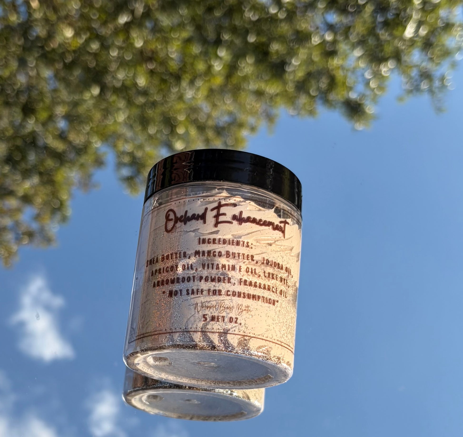 Shea Butter, Mango Butter, Jojoba Oil, Apricot Oil, Vitamin E Oil, Mica Powder, and Fragrance Oil